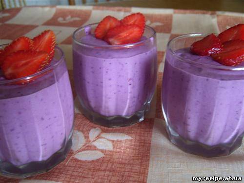 Сирковий десерт"Трускавково-чорничний" ( сир, трускавка, чорнициця, цукор-пудра-все зміксувала в комбайні)