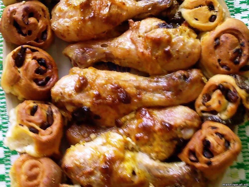 | В мене сьогодні пиріжки з грибами запечені вмісті з ніжками курячими в духовці